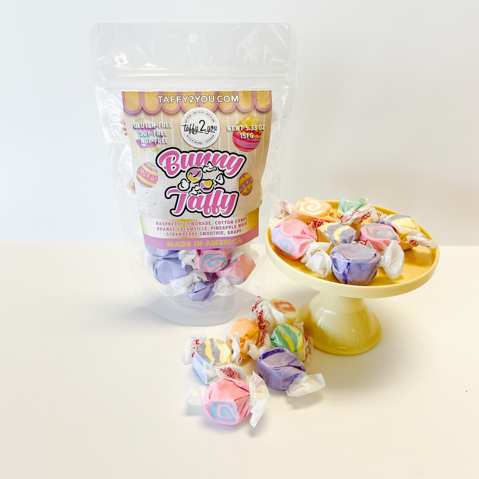 Our taffy is allergy friendly - gluten free and tree nut free. It does contain milk and eggs. The shelf life of taffy is 6+ months so you have plenty of time to enjoy it. Remember taffy is temperature sensitive, so always store at warm or cool to room temperature to fully enjoy the flavors.