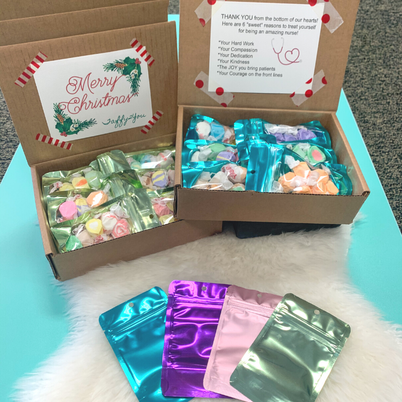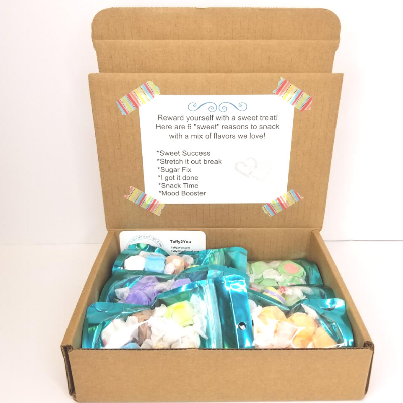 This box is perfect for those people who want to sample our delicious taffy before committing to a membership. It’s also perfect for those special occasions that you want to celebrate with friends or family. Think Mother's Day or Father’s Day, or Health Care Worker Appreciation Day, or Thank You Day… you are only limited by your own imagination (we can personalize a message to include in the box).